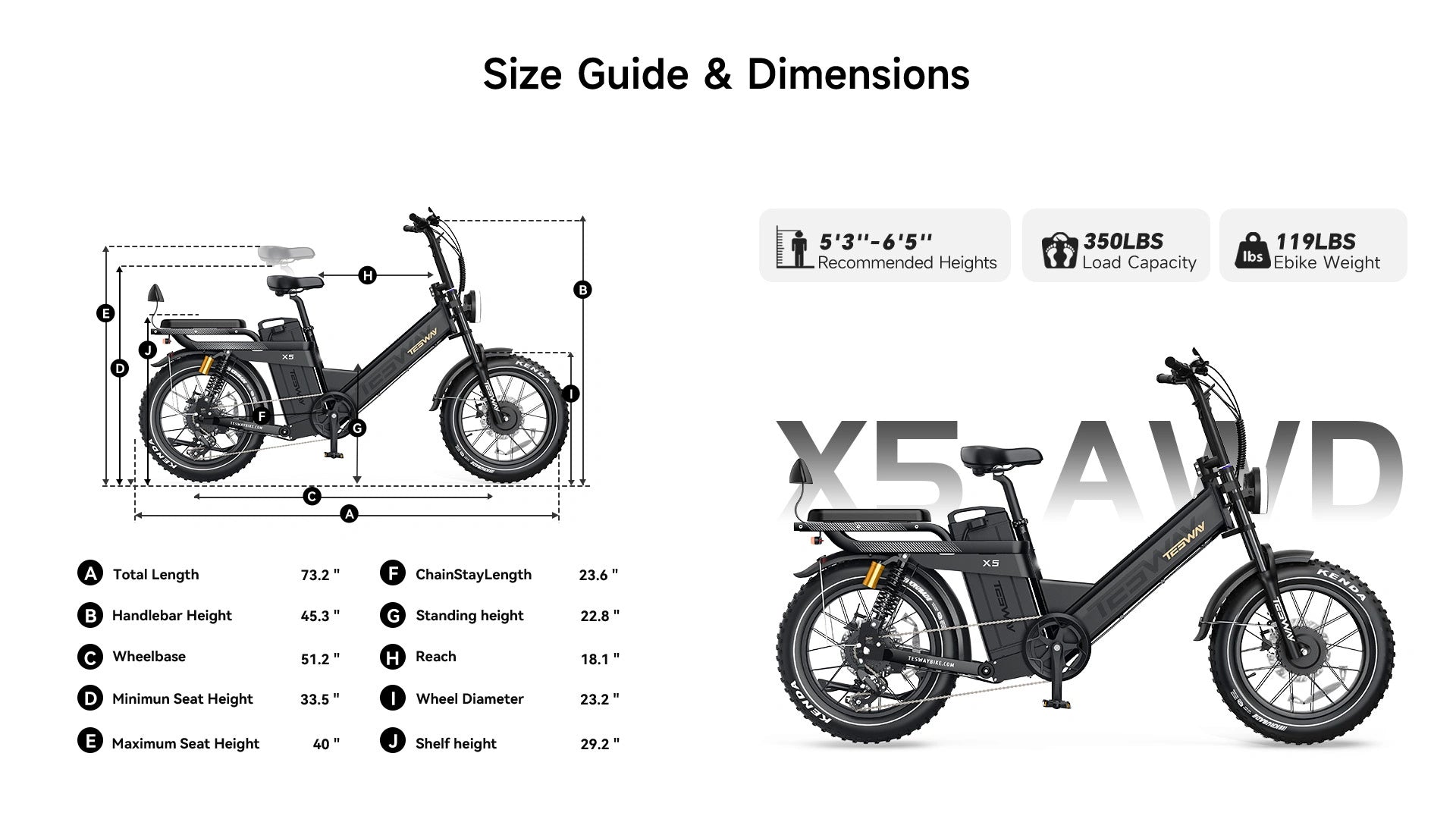 TESWAY X5 AWD Step-Thru EBike – Easy Mount 3600W Dual Motor