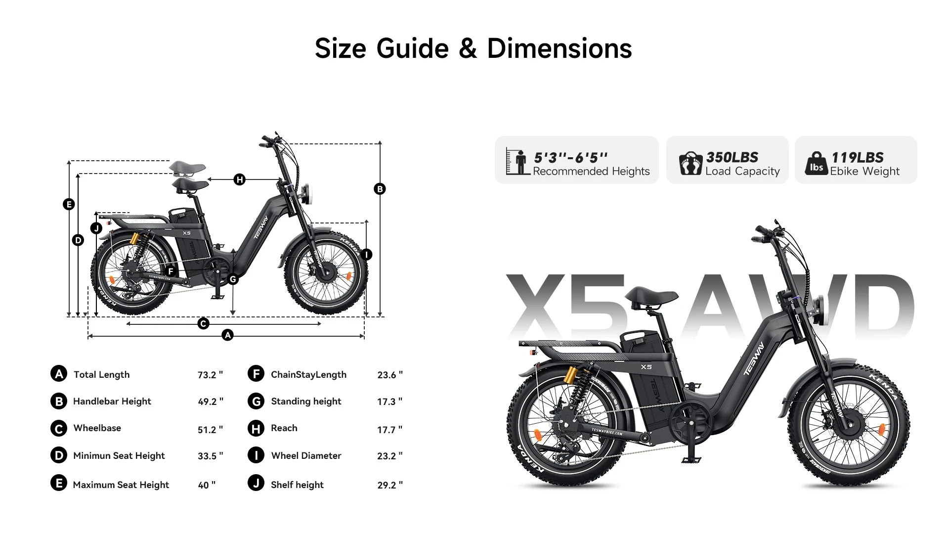 Up to 320 KM Long Range | 52V 60AH Battery AWD for All Terrains